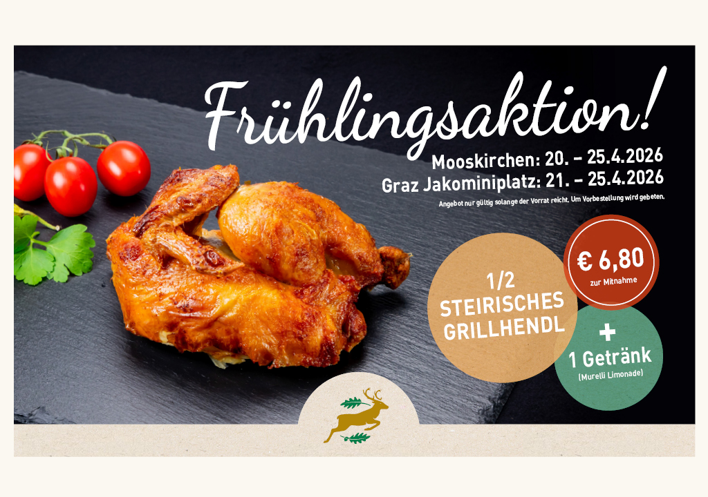 Zu unserer diesjährigen Frühlingsaktion mit Grillhendl Angebot & Getränk!